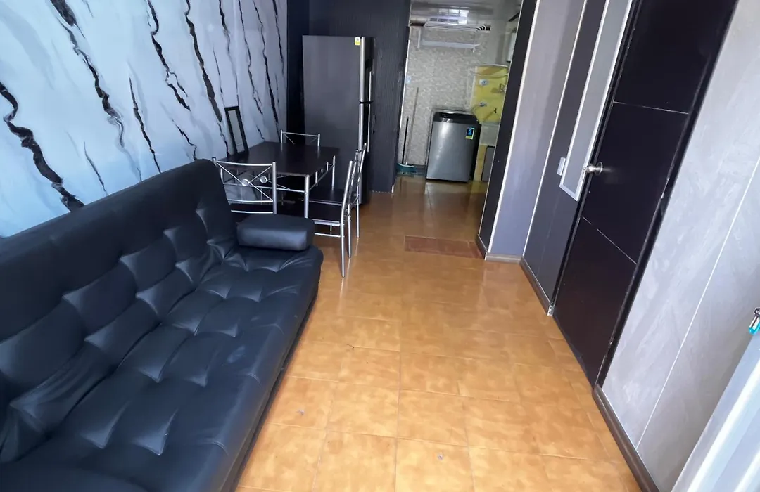 This apartment looks out onto the garden and comprises a living room and a fully equipped kitchen.